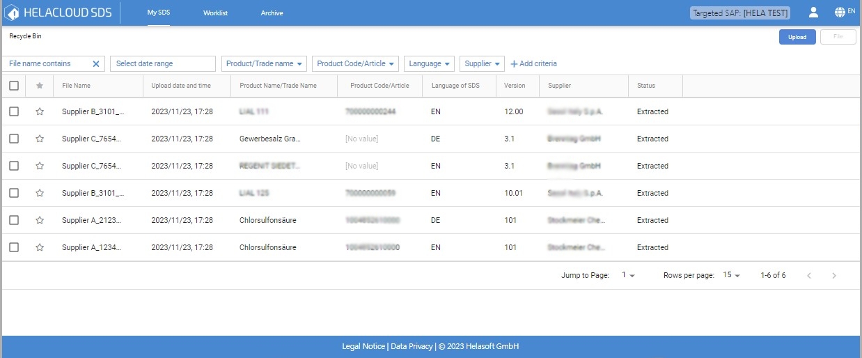 6. Finally upload the SDS to your SAP or other ERP systems and archive it in one central place, the HELACLOUD library.