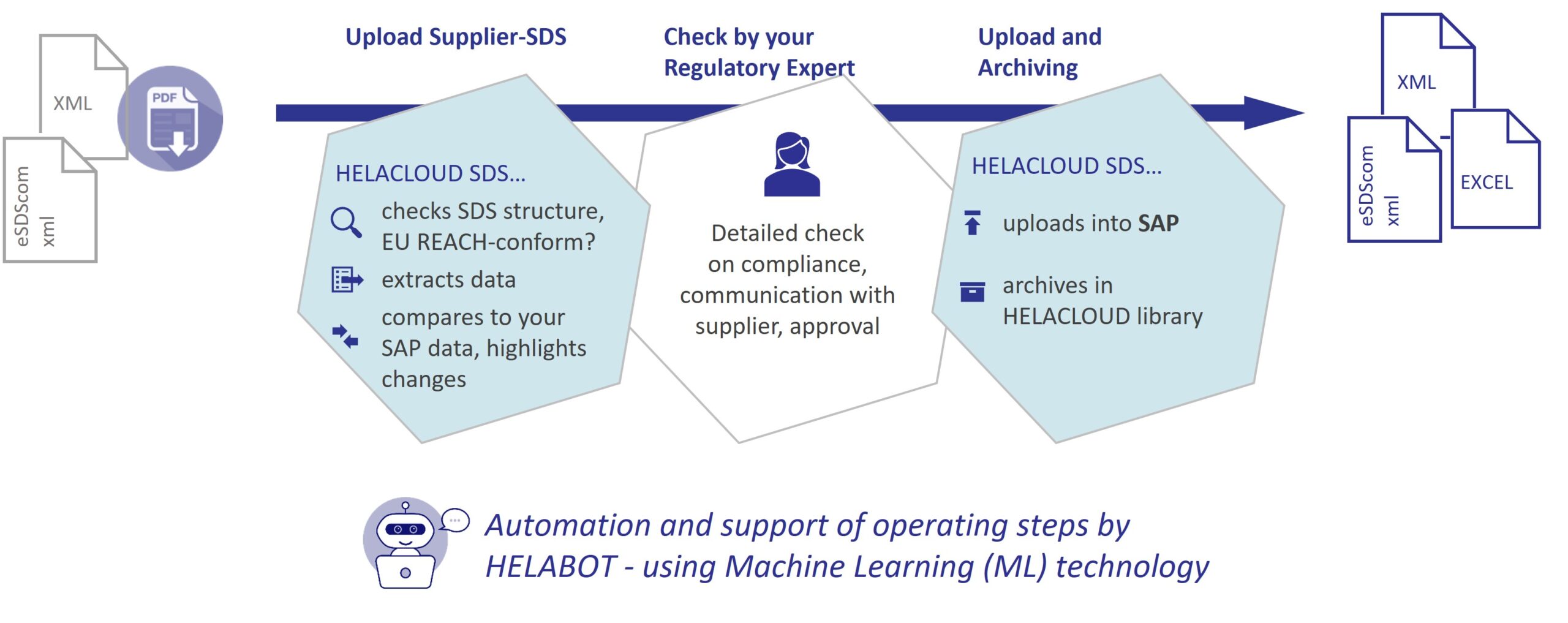 Process overview: automated SDS extraction with HELACLOUD SDS, using AI / Machine Learning technology